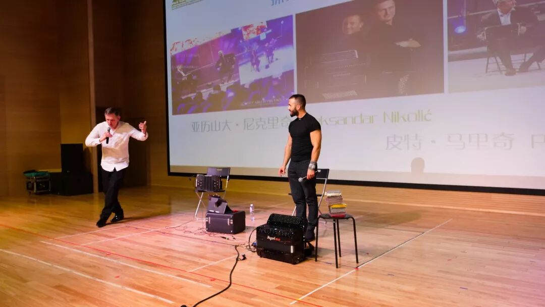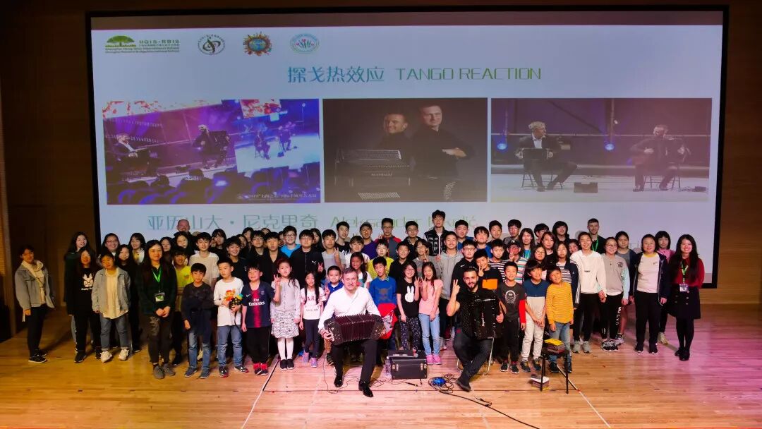 On April 18, 2019 (Thursday), Shanghai Hong Qiao International School, together with Shanghai Accordion Association, Shanghai Changning New Hong Qiao Center for Culture & Communication and Hong Qiao street office, invited the world's top accordion duo: TANGO REACTION to perform in the Rainbow Bridge Theater.